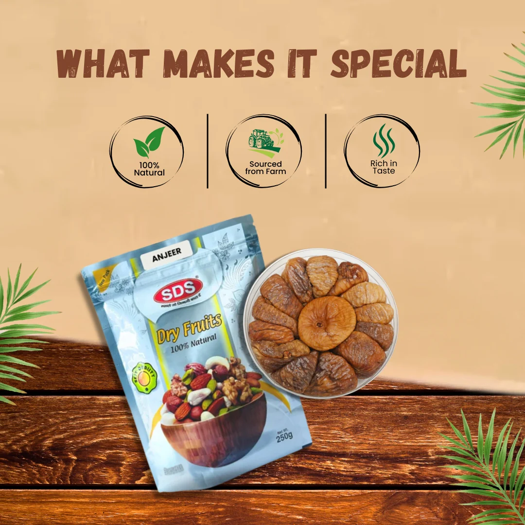 Discover the wholesome goodness of SDS Anjeer, a perfect addition to your daily diet packed with essential nutrients. Known for its natural sweetness and chewy texture, anjeer (figs) is a powerhouse of fiber, vitamins, and minerals, making it a fantastic snack or ingredient in your favorite dishes.